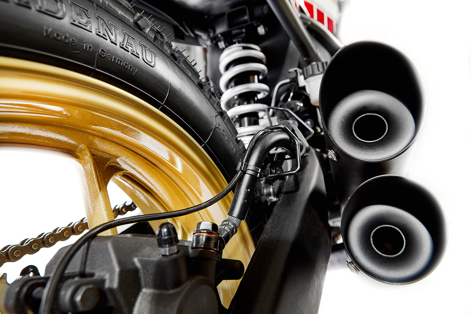 Di antara perubahan yang telah dilakukan adalah penggunaan tayar off-road, tangki petrol aluminium buatan tangan, pelana yang diperbuat daripada gentian kaca dan ekzos turut ditukar kepada jenis Hurricane. Malah papan pemukanya turut digantikan dengan blok digital kecil dan lampu standard telah ditukar kepada dua lampu sorot jenis LED yang disesuaikan di bawah plet nombor perlumbaan plastik.